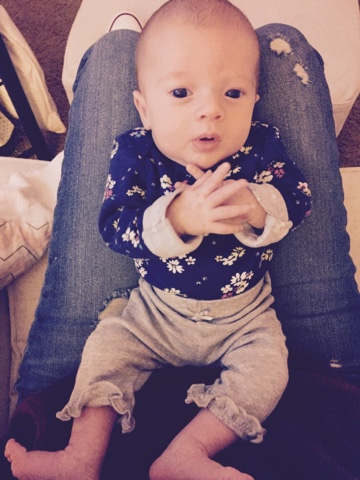 Sleep is a rollercoaster around here. At the beginning of the month, you were pretty predictable.. waking up every three hours on the dot to eat. When we got to Georgia and you were in a new place and your clock was off we had a BIG struggle getting you to sleep at all at night. After about a week in Georgia, not only were you back on schedule, but you were sleeping 6-8 hours straight!!! Of course, the second we came back to California you were off again. After two night of you waking up every hour Mama headed straight to Target to buy the same rocker/sleeper we were borrowing from your boyfriend Mick. Last night we were right back on schedule of waking up every three hours on the dot. After knowing what it feels like to sleep 6-8 hours straight, we are crossing our fingers and toes to get you back on that schedule!!