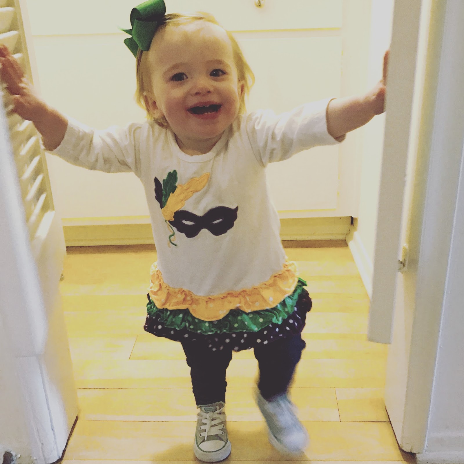 I don't even know where to start!! She has been walking since 10 months, so by now we are at a full on sprint. And she has two speeds - on and off. She is a huge climber.. on the couch, in and out of a box, in the bathtub. Little girl never slows down. She has several words now and she is starting to pick them up faster and faster.. staples around here are "No", "Ma" (Molly), "Shoes", "Bye", "Hey" (which is always "Heeeeeeeyyyyyyy!"), "More", "Mama", "Dada", "Night Night", and more recently she is starting to say "1, 2, 3", and "A, B, C"! She is a nut!! She knows she funny and will do anything to make you laugh. She is great at playing independently and the toy of choice is always a book. She is always down to "re" (read) and "rock rock". She has songs from daycare that she knows motions to and little girl is on point with the dance moves. Clean up is her favorite game - she is always down to help put her toys in the basket. She's devious though.. she knows what is off limits and loves to see juuuust how close she can get! And she thinks it's hilarious! She will take off into the bedroom with something she's not supposed to have and cackle all the way!! She is really "getting" the world around her and it is so, so fun.