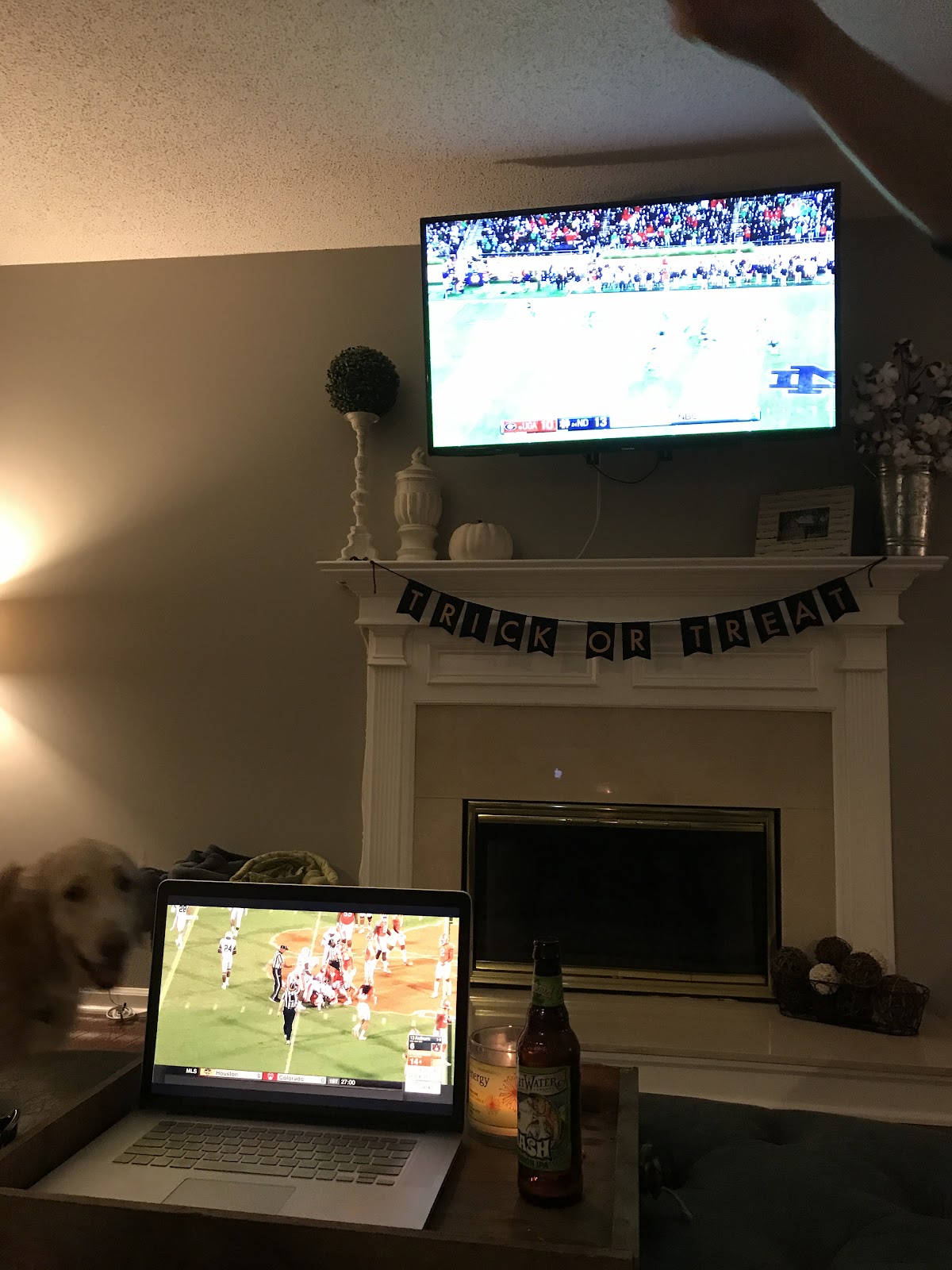 We grilled burgers and AJ had them conveniently ready right at half time!